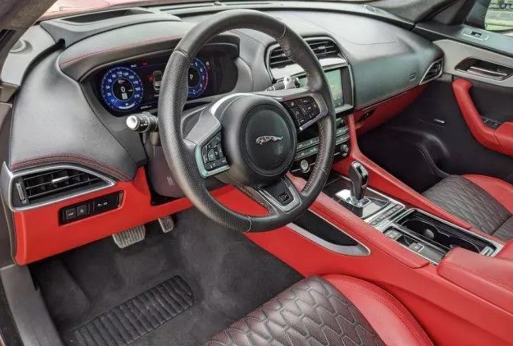 الوحش البريطاني جاكوار F-PACE SVR. محرك سوبر تشارج، صوت عادم طربي، وفخامة لا تضاهى. اللون الأحمر المميز.